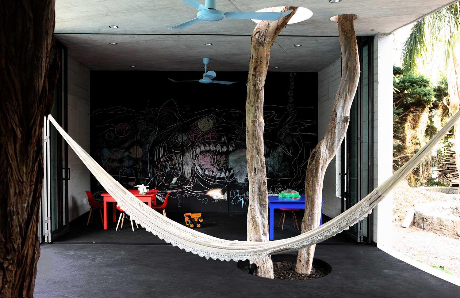 Situado a 50km al sur de Ciudad de México, pertenece a un complejo destinado al alquiler de viviendas. Tiene estructura de hormigón y cubierta curva con forma de Y, pensando mucho en la vegetación, ya que es atravesada por varios árboles del lugar. Se trata de un espacio común, abierto a un jardín, para disfrutar de la naturaleza. El edificio dispone de una pequeña cocina con una barra, aseos y vestuarios en un área, y en el otro área un espacio más cerrado como sala de televisión o conversación. Entre ambas áreas existe una zona abierta pensada como zona infantil o lectura, con tumbonas, que comunican todo el espacio y lo hace contínuo, donde los verdaderos protagonistas son la vegetación y la vida al aire libre.