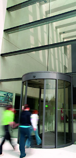Investigando la protección para los grandes vestíbulos abiertos que se proyectan para edificios públicos hoy, he encontrado distintas soluciones, como puertas giratorias que actúan de corta fríos y que son una de las soluciones más usadas en climas fríos y húmedos, en los que son requisitos tener protección frente a la acción del viento y la lluvia.