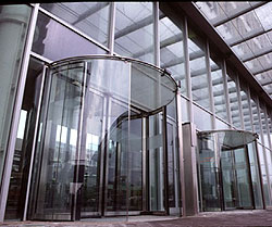 Investigando la protección para los grandes vestíbulos abiertos que se proyectan para edificios públicos hoy, he encontrado distintas soluciones, como puertas giratorias que actúan de corta fríos y que son una de las soluciones más usadas en climas fríos y húmedos, en los que son requisitos tener protección frente a la acción del viento y la lluvia.
