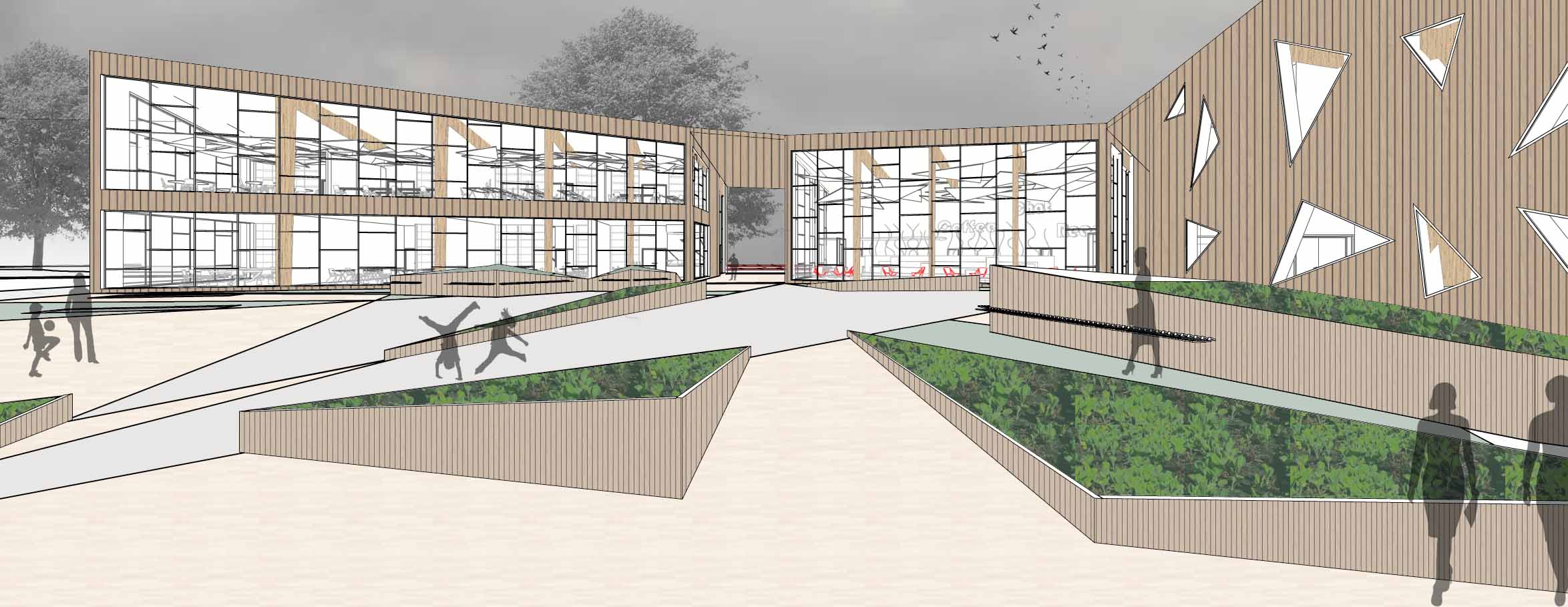 Hoy quiero dejaros algunas imágenes de post-producción que he realizado de algunas vistas arquitectónicas. Para ello he utilizado la herramiento Photoshop, una vez que obtenemos la vista de Revit o Autocad, habiéndola convertido en JPG o PDF. Utilizando texturas podemos obtener buenas visualizaciones sin la necesidad de hacer renderizados. Son dos formas de realizar visualizaciones "realistas" de los proyectos para poder mostrar a los clientes y que ayudan a venderlos.