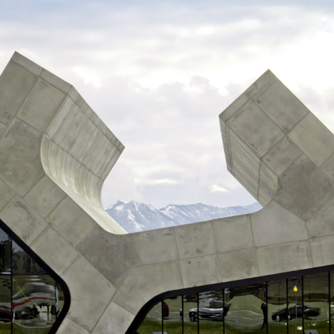 Esta zona para el descanso forma parte de una serie de áreas de la autopista que recorre el país y conecta Azerbaiyán con Turquía. Los arquitectos: "Las nuevas áreas de descanso se encuentran en zonas elegidas por su paisaje y sirven como motores de la zona y las ciudades cercanas. Incluyen no solo una estación de servicio y un supermercado, sino también un mercado de productos de la zona y un espacio cultural para las artes y la artesanía locales". Todas comparten un espacial diseño en hormigón con soportes inclinados.